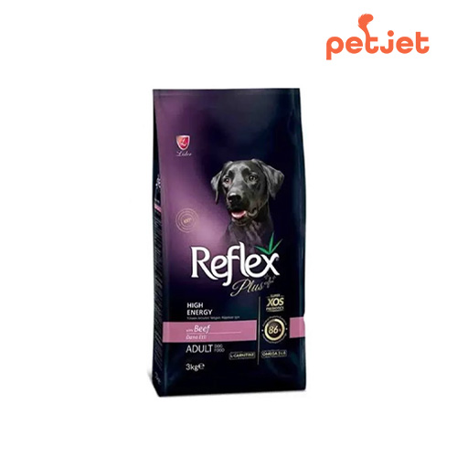 غذای خشک سگ بالغ رفلکس پلاس با انرژی بالا (Reflex Plus High Energy Adult Dog Food with Beef)، یک غذای خشک سگ با کیفیت بالا و با طعم گوشت گاو است که برای سگهای فعال، باردار یا شیرده از تمام نژادها مناسب میباشد. این غذای خشک سگ بالغ با گوشت گاو و انرژی بالا از برند Reflex Plus شامل گوشت گاو به عنوان منبع پروتئین حیوانی است. همچنین، این غذای خشک شامل کربوهیدراتهای سریع جذب، چربیهای سالم، ویتامینها، مواد معدنی، اسیدهای چرب امگا 3 و 6 و آنتیاکسیدانهای طبیعی است.